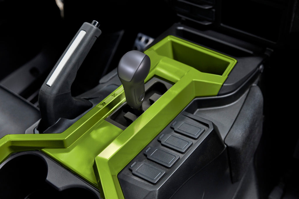 For ultimate value and comfort, the Wolverine X2 1000 R-Spec adopts premium interior features, including driver controls, automotive-style soft touchpoints, blue backlit LED dash meter, 6-way toolless adjustable seatbelts, accessory switch and door speaker cutouts, sealed console and glove boxes, an open-gate shifter, soft-touch parking brake lever, and two cupholders for comfort and style beyond competitors’ hard plastic interiors.