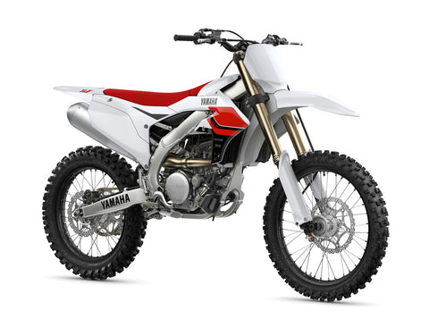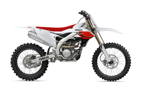 Celebrate seven decades of motorsports excellence with the 2026 YZ250F 70th Anniversary Edition. Iconic white and red speed block livery combines with the YZ250F's sleek, aggressive bodywork to commemorate the 1955 birth of Yamaha Motor Company in standout style.