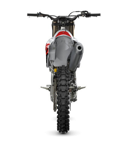 An aluminium bilateral beam frame based on the flagship YZ450F provides just the right amount of strength and flex for the perfect balance of stability and cornering performance. The result is a better handling machine with lightweight feel and increased front wheel traction, allowing the rider to enter corners with greater confidence and more line choices.