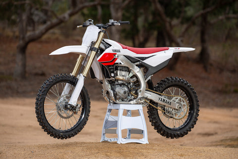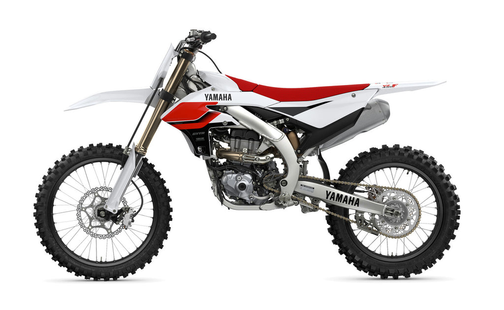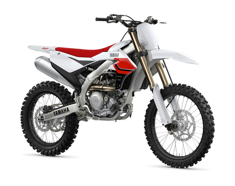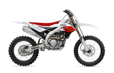 Celebrate seven decades of motorsports excellence with the 2026 YZ450F 70th Anniversary Edition. Iconic white and red speed block livery combines with the YZ450F's sleek, aggressive bodywork to commemorate the 1955 birth of Yamaha Motor Company in standout style.
