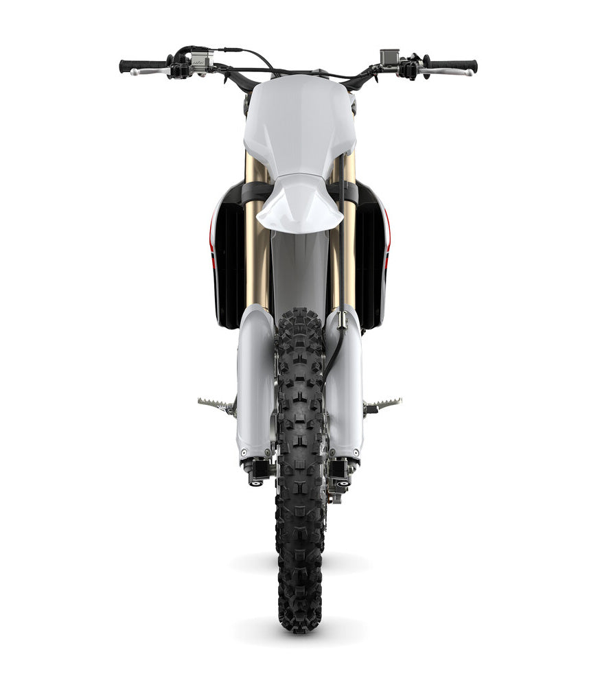 Careful computer-aided design of each wheel’s cross-sectional profile shaves weight without sacrificing durability. The YZ450F's rear wheel comes laced with a three-cross-spoke pattern for improved impact absorption and rider feel.