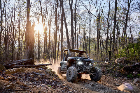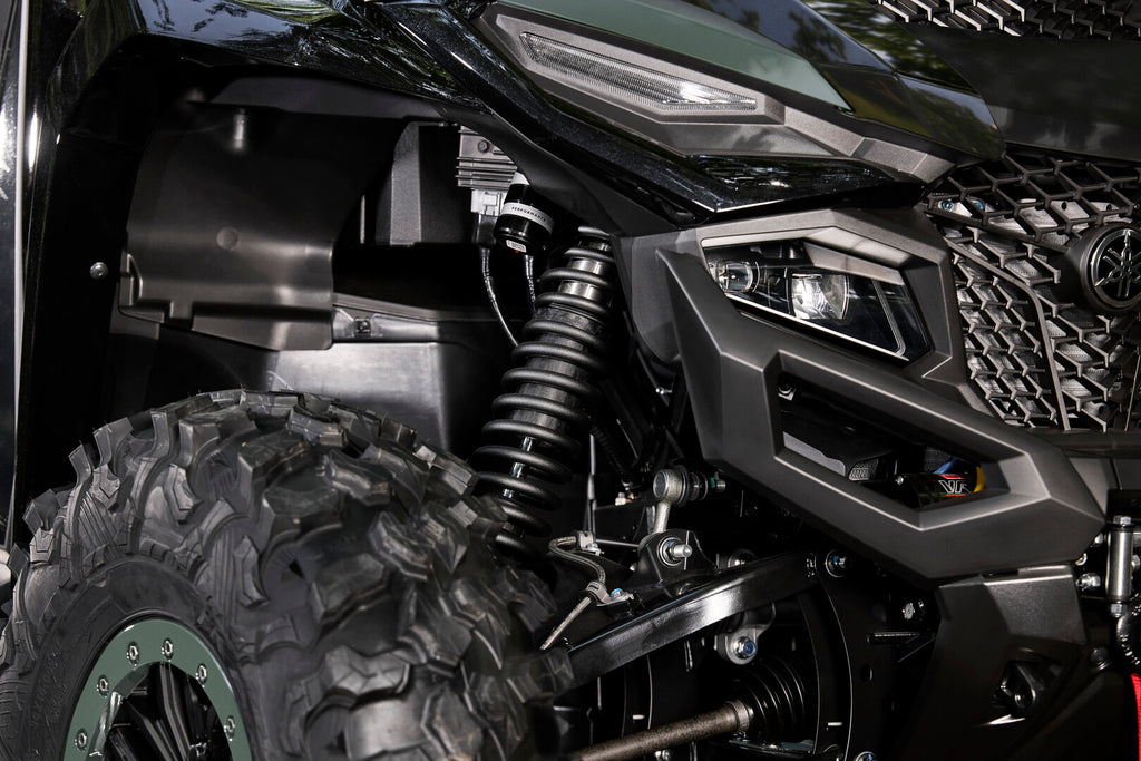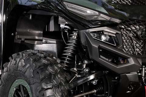 The advanced heavy-duty suspension is designed to provide maximum articulation in low speed situations, achieving both chassis control and bump absorption when trail riding and maximum bottoming resistance at higher speeds. The wise-arc A-arms paired with the FOX 2.0 QS3 shocks deliver 360mm of travel up front and an amazing 430mm of travel in the rear. The FOX 2.0 QS3 shocks can be switched - without tools - between three custom positions to enhance comfort during relaxed driving, increase damping for normal trail riding and maximise damping during sport driving.