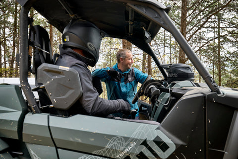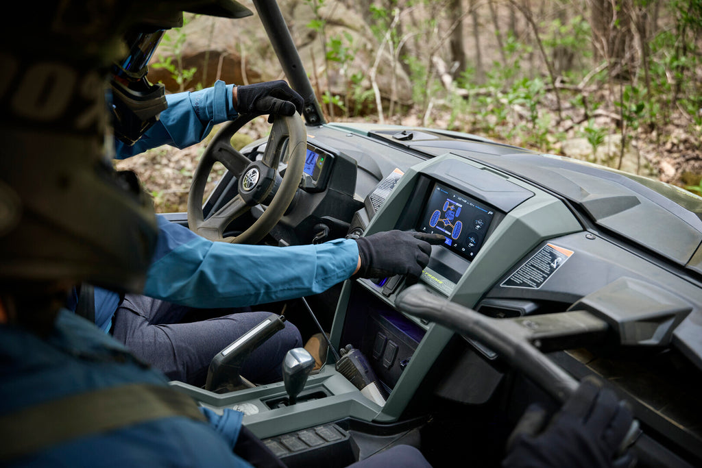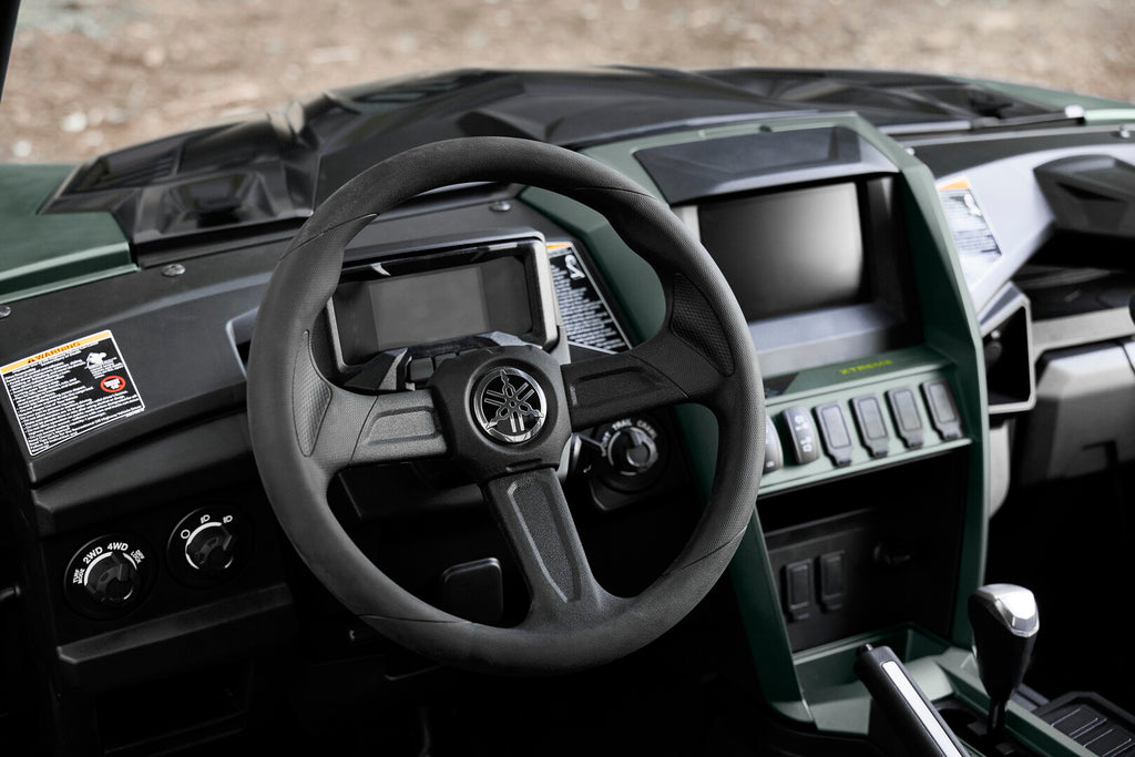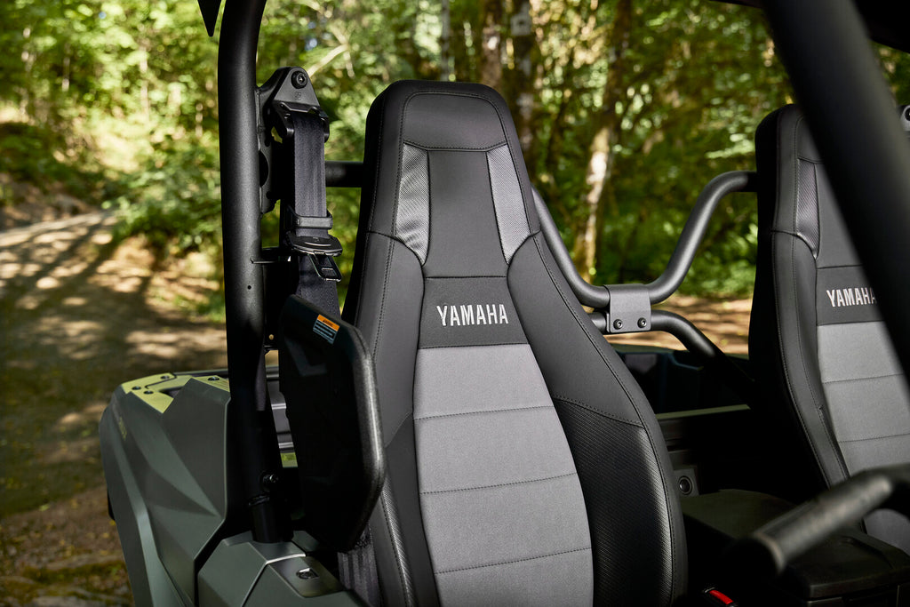 Featuring the most automotive-style driver and passenger soft touchpoints in its class, the RMAX 1000 XT-R provides a more relaxed experience even over rough terrain. The steering wheel and passenger handhold have the best shape and soft‑touch in the market while providing a quality feel way beyond the competitors’ hard plastic. Additional comfort points have been strategically placed in locations where knees and arms frequently contact interior components. Chrome inlays are also embedded in the shifter and hand brake for added styling.