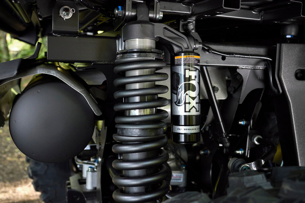 | Suspension (front): | Independent double wishbone w/anti-sway bar, FOX QS3 piggyback shocks, 360mm travel |