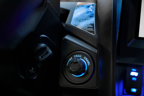 LOW mode provides less assist for greater feedback and a sportier feel that’s perfect for higher speed riding. There’s also a differential lock setting that offers maximum steering assist when the front differential lock is engaged.